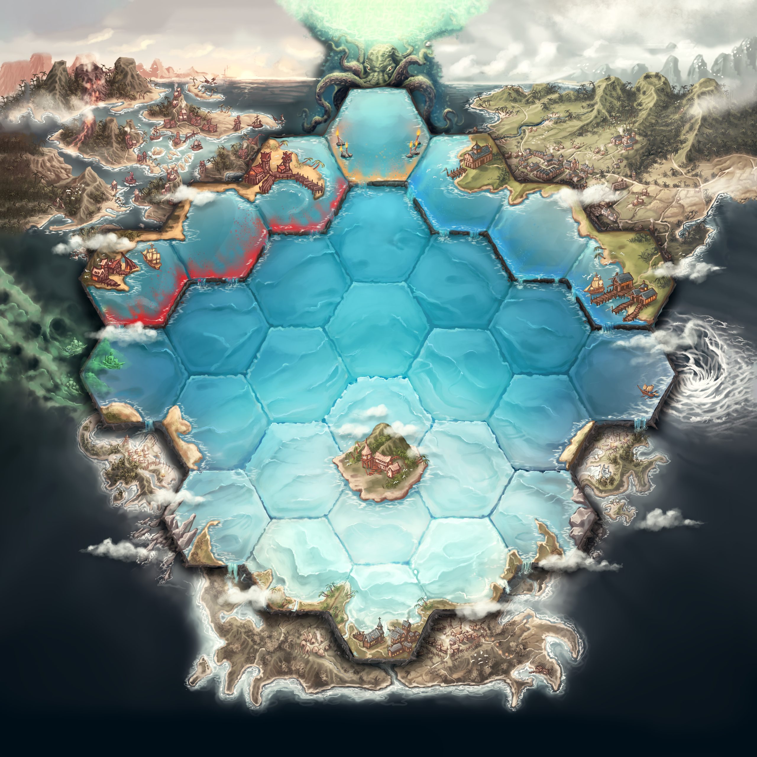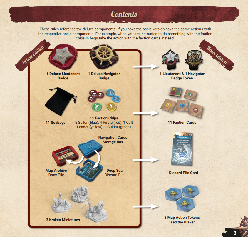 Kraken to gra ukrytych tożsamości, blefu i dedukcji, z trzema stronnictwami o całkowicie rozbieżnych celach. Wszyscy stanowicie załogę jednego statku, jednak pragniecie poprowadzić go zupełnie innym kursem. Lojalni marynarze chcą doprowadzić okręt do bezpiecznego portu, natomiast piraci zaś zamierzają pożeglować do pełnej łajdaków Karmazynowej Zatoki. W tym samym czasie szalony kultysta stara się przekabacić członków załogi, aby pomogli mu wezwać mrocznego pana głębin – nikogo innego jak właśnie tytułowego Krakena.